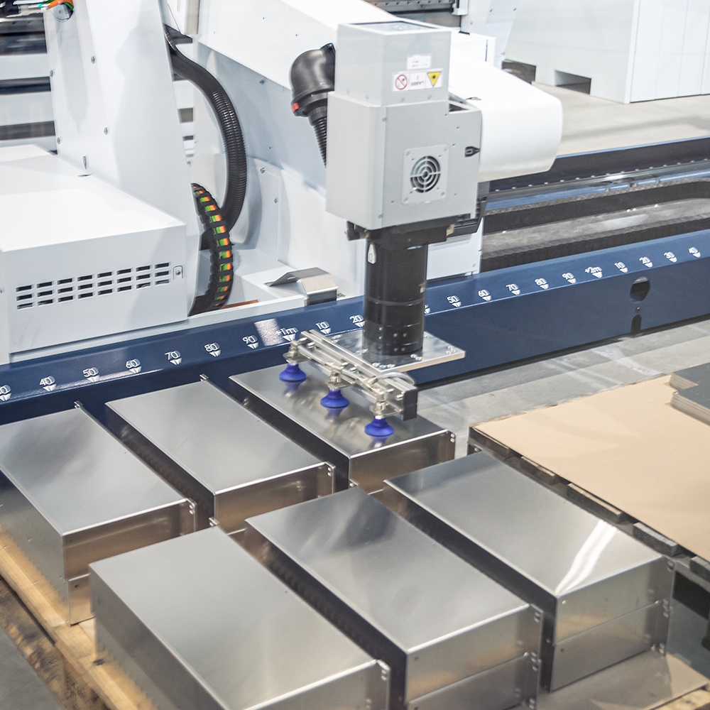 The machine is fully prepared for integration with a future automatic sheet storage system located behind the machine. This enables a highly efficient and scalable production setup with minimal manual handling – laying the foundation for fully automated 24/7 production.